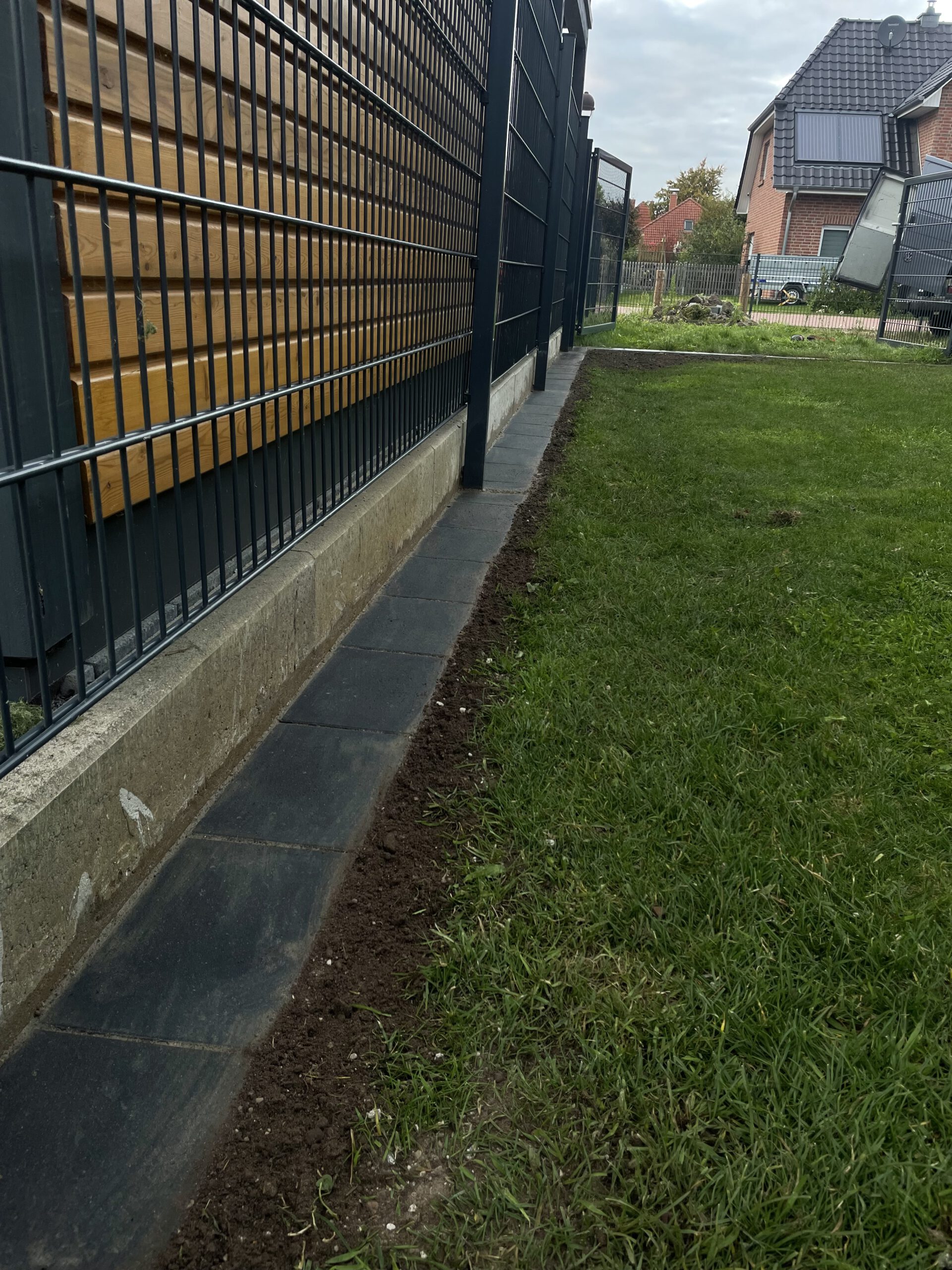 Das Ergebnis: ein sauberer, langlebiger Abschluss zwischen Rasen und Zaun, der nicht nur praktisch ist, sondern den Garten optisch aufwertet und pflegeleicht macht.