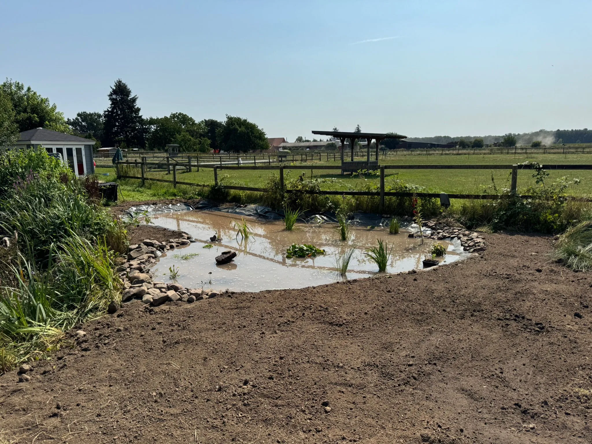 Ein Stück Natur im eigenen Garten: Unser neu angelegter Naturteich vereint klares Wasser, natürliche Bepflanzung und Lebensraum für Tiere – pure Entspannung und ein Highlight für jeden Garten.